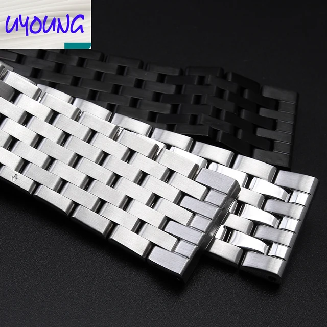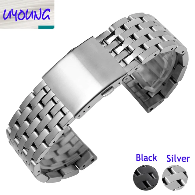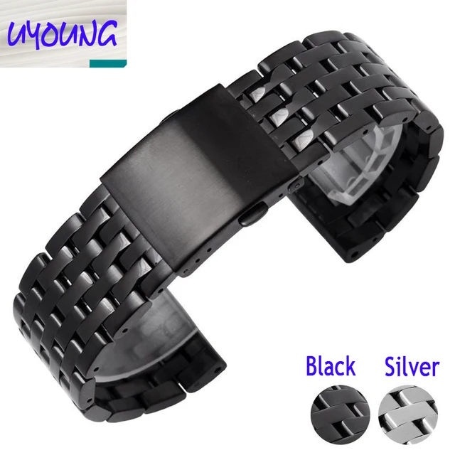 | [해외]스테인레스 스틸 팔찌 고체 금속 손목 시계 스트랩 24 26 28 30 미리메터 손목 밴드 블랙 실버 DZ 시계 액세서리 |
