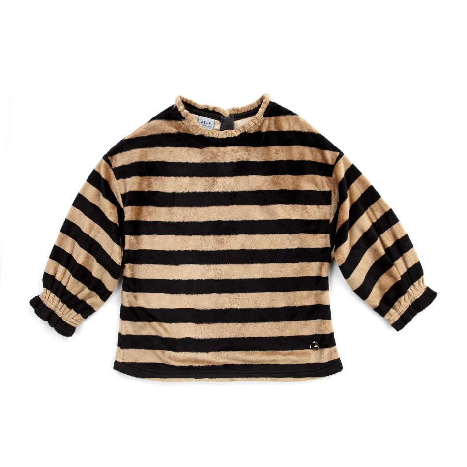 ? 스트라이프 퍼 느낌이 고급스러우면서도 세련되어 보이는 티셔츠입니다. 케이프 느낌이 나는 간지로 스키니팬츠 와이드팬츠와 모두 코디하기 좋으며, 소매의 셔링으로 모아지는 간지가 귀여운 퍼티셔츠 아이템입니다. | ||||||||