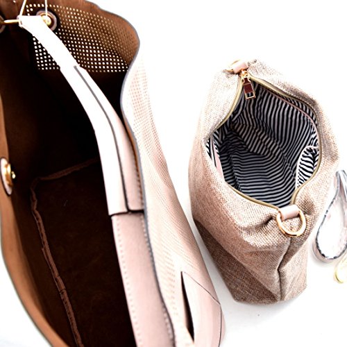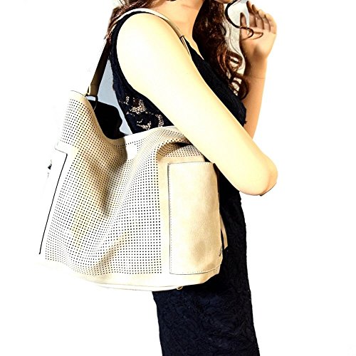 -. Title : Le Miel Perforated Side Pocket Tote w/ Inner Bag Crossbody- Gray