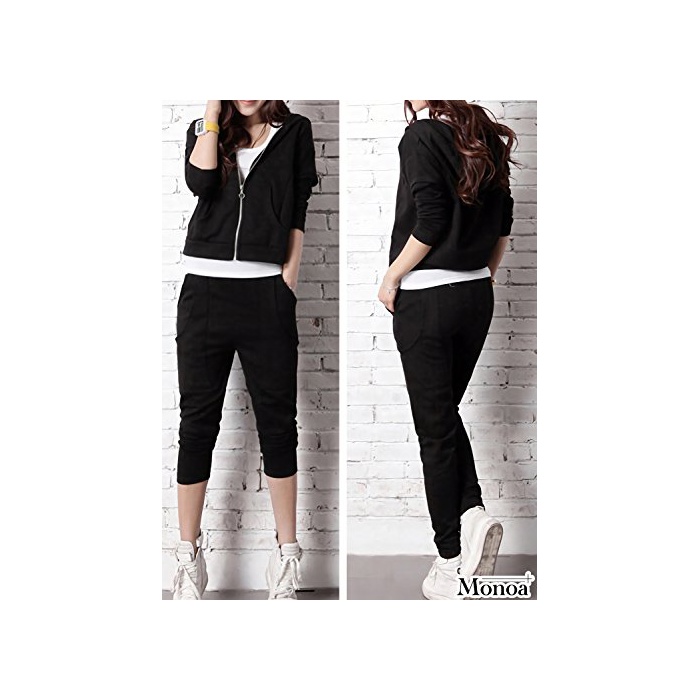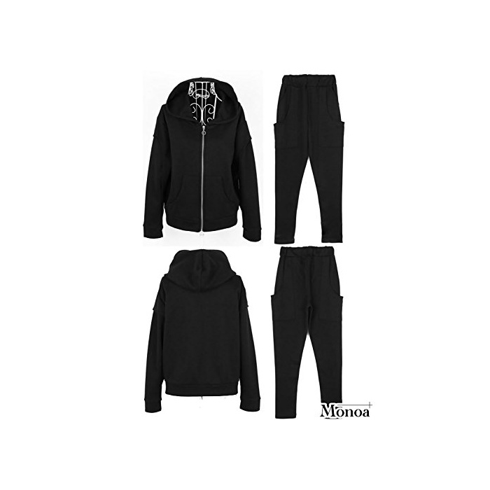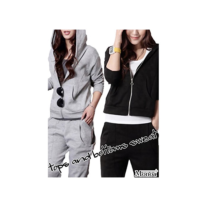 원본상품명: Monoa(モノア) スウェット ジャジ 上下セット レディス すっきり シルエット ルムウエア 長袖 セットアップ ブラック XL