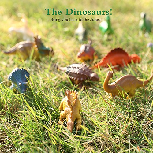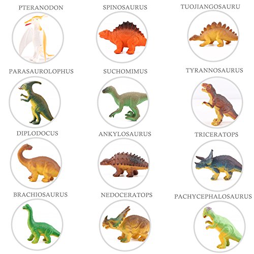Zooawa 12 Pieces Lifelike Mini Dinosaur Play Set Dinosaur Species: Triceratops, Styracosaurus, Parasaurolophus