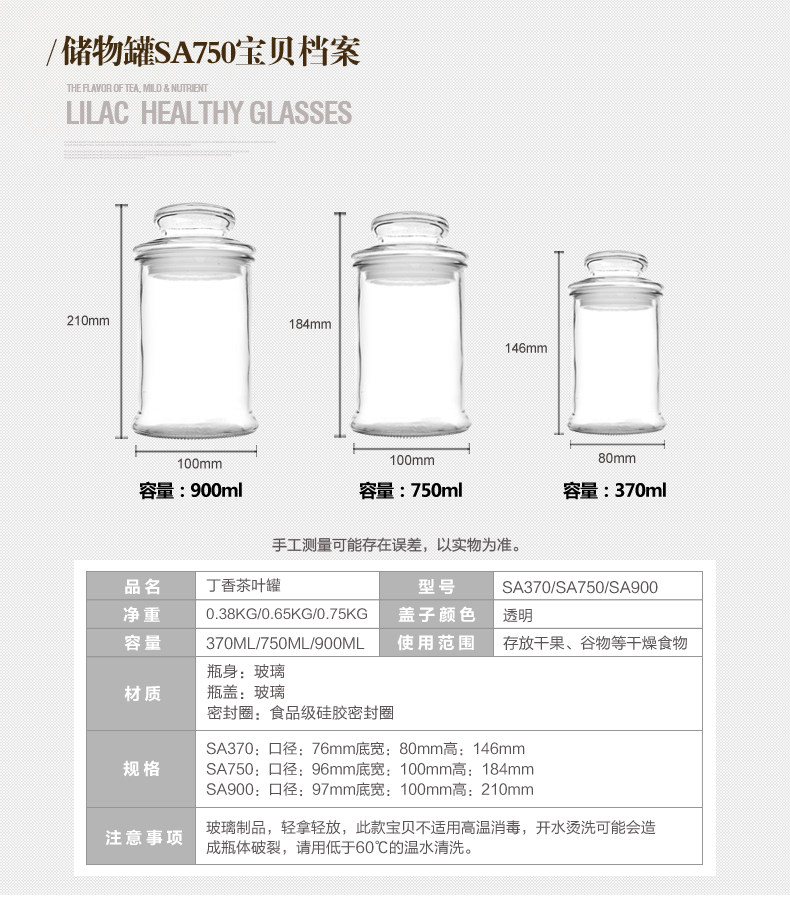 紫丁香 玻璃储物罐 收纳罐茶叶奶粉密封罐储物瓶便携防潮瓶子