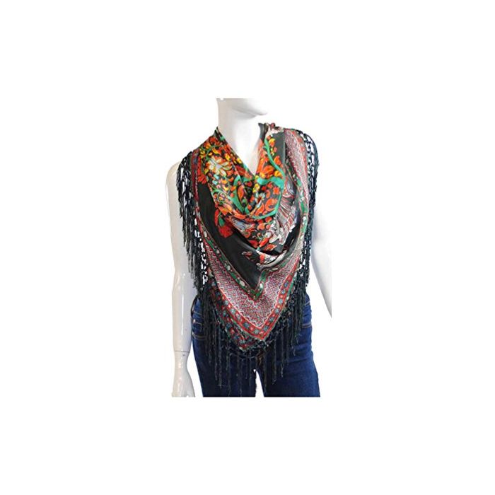 (토라《니》) TOLANI 실크 스톨/fringe 부착 정방형 스카프(그레이×오렌지) [병행수입품]