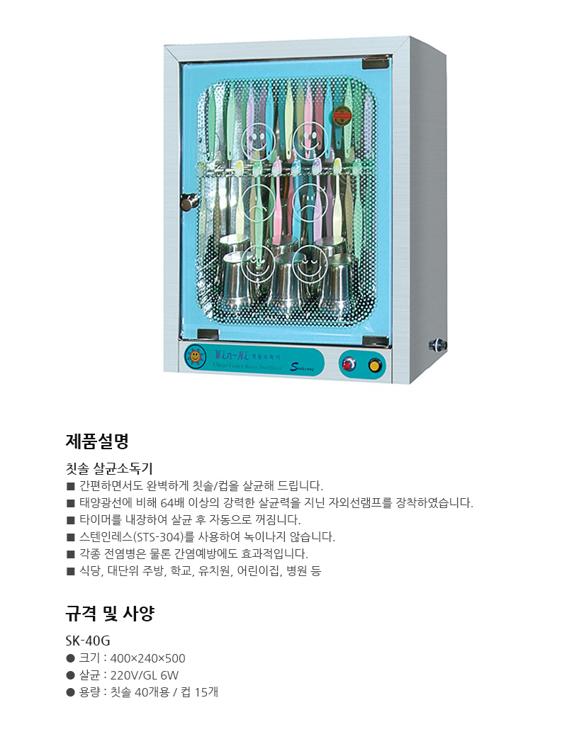 Dry SK-40G 15 pieces of 40 cups 400 × 240 × 500 mm Ultraviolet ray. Toothbrush disinfector