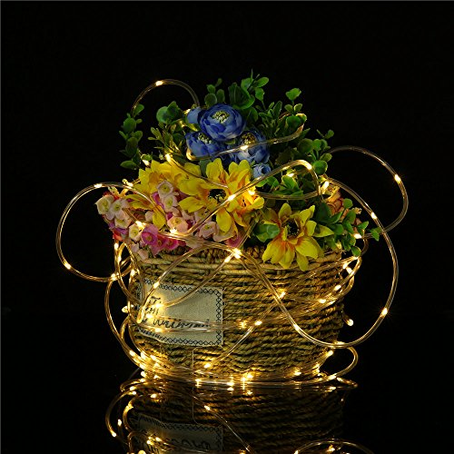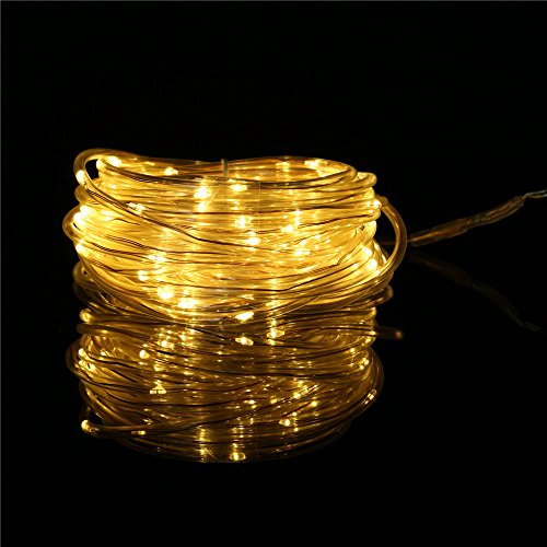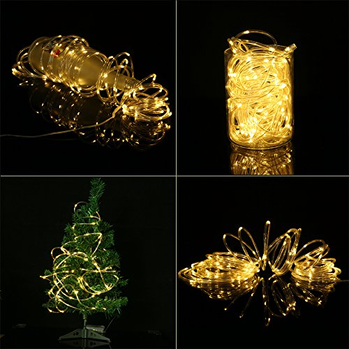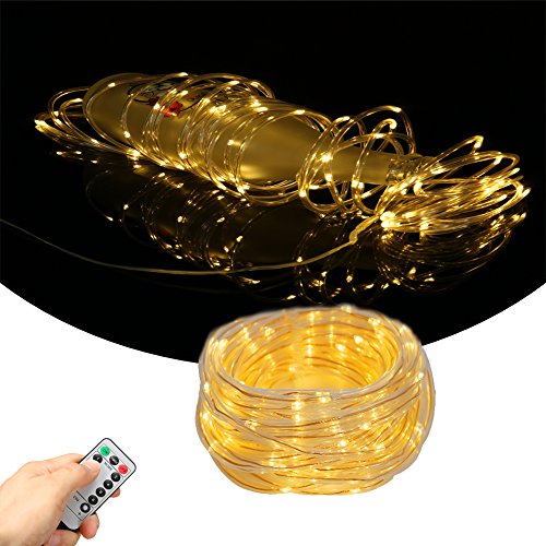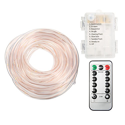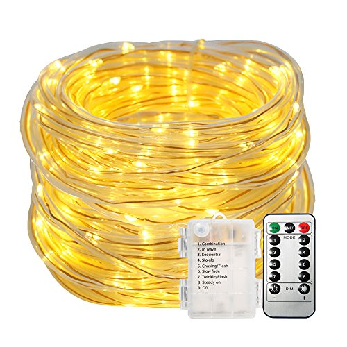 SOLMORE LED Rope Lights Battery Operated 33ft/10M 100 LEDs String Lights Fairy Firefly Starry Lights 8 Modes Dimmable with Remote Waterproof for Party Wedding Dance Home Outdoor Decor Warm White