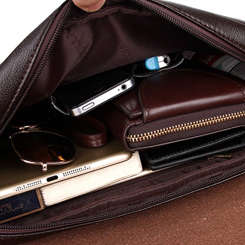 -. Feature : Dimensions: small:6.69*7.4*2.7inch large:7.8*9*2.7inch horizontal:12.9*9*3.14inch。The size is measured according to object,Please compare carefully with the model photo and size before buying / Crafted with PU leather.Adjustable nice shoulder straps :82-142cm horizontal:90-152cm / Structure Details: horizontal:Interior with a main compartment that is large enough to hold A4 magazine, IPAD,books,ect but cannot store a laptop) ,1 wall zipper pocket and 2 wall open pockets which can hold your small stuffs like cards, key, phone, wallet and humidor ect; 2 pen loops; Back exterior with 1 zipper pocket large:can hold within 11inch ipad,small stuffs like cards, key, phone, wallet and humidor ect small: can't accommodate IPAD and textbooks, but can hold wallet, phone ect, / Smooth oiled leather with Double and Contrast stitching.This distinctive stylish and functional bag in a distressed oiled leather is made of impressive quality leather. This is a great bag to hold an Ipad. Very comfortable to carry around. The messenger bag has a very long adjustable strap. It has a very sturdy but fine look. / PU is polyurethane. Polyurethane leather has excellent performance. Due to the impact of animal protection associations, coupled with the development of technology, polyurethane synthetic leather performance and application is more than natural leather. After adding ultrafine fiber, the toughness and permeability of polyurethane, wear resistance has been further strengthened. There is no doubt that the finished product is quite excellent.