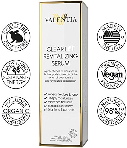 -. Title : NEW - Valentia Clear Lift Revitalizing Serum - Natural & Organic Ingredients - Includes Wakame (Seaweed), Lactic Acid, Licorice, Gotu Kola and Argan Oil - 1.18 Oz - A New Beginning for your skin.