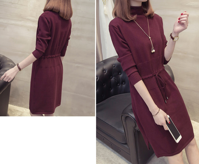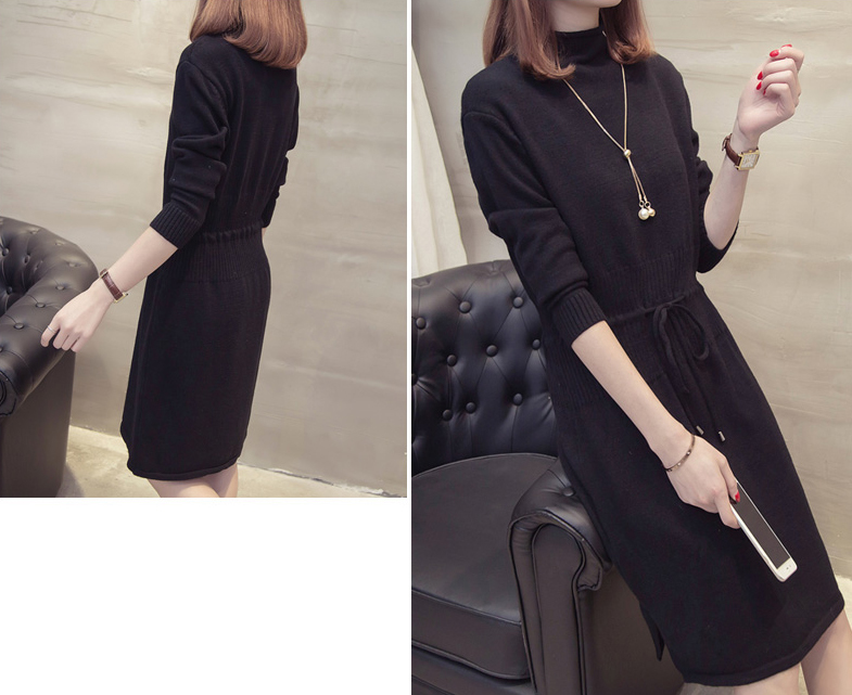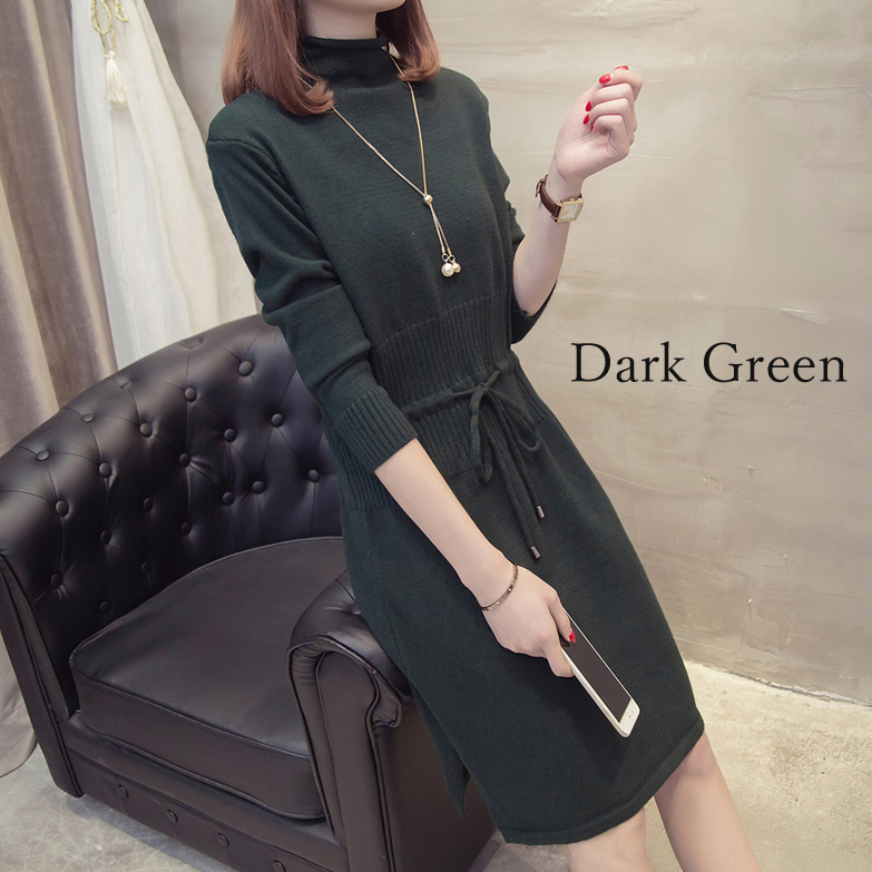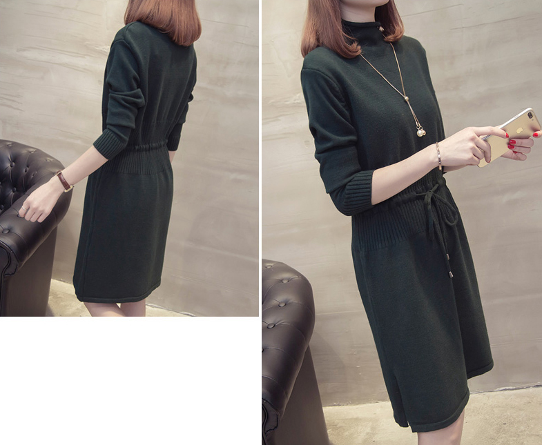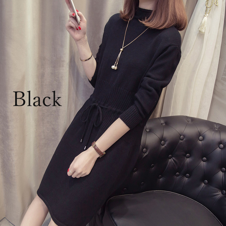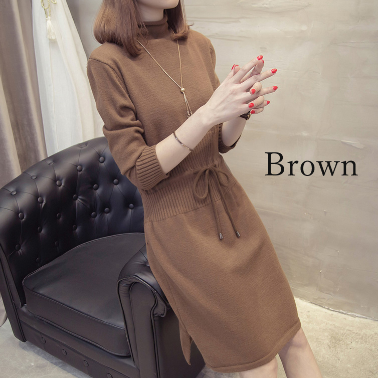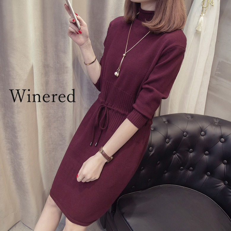 すっきり見えするIラインのニットワンピース。