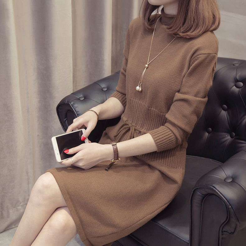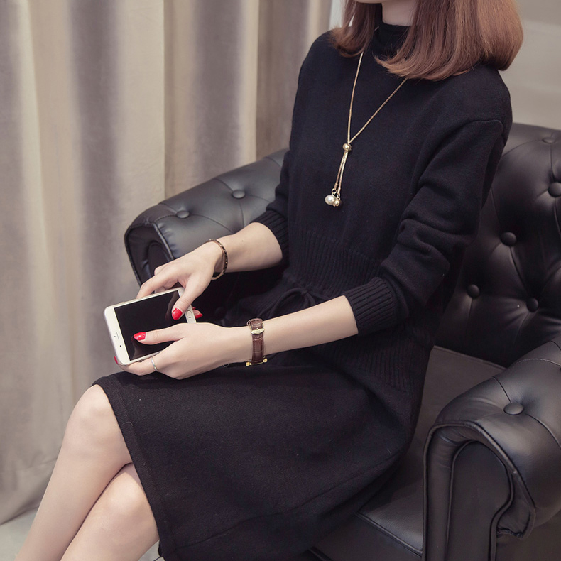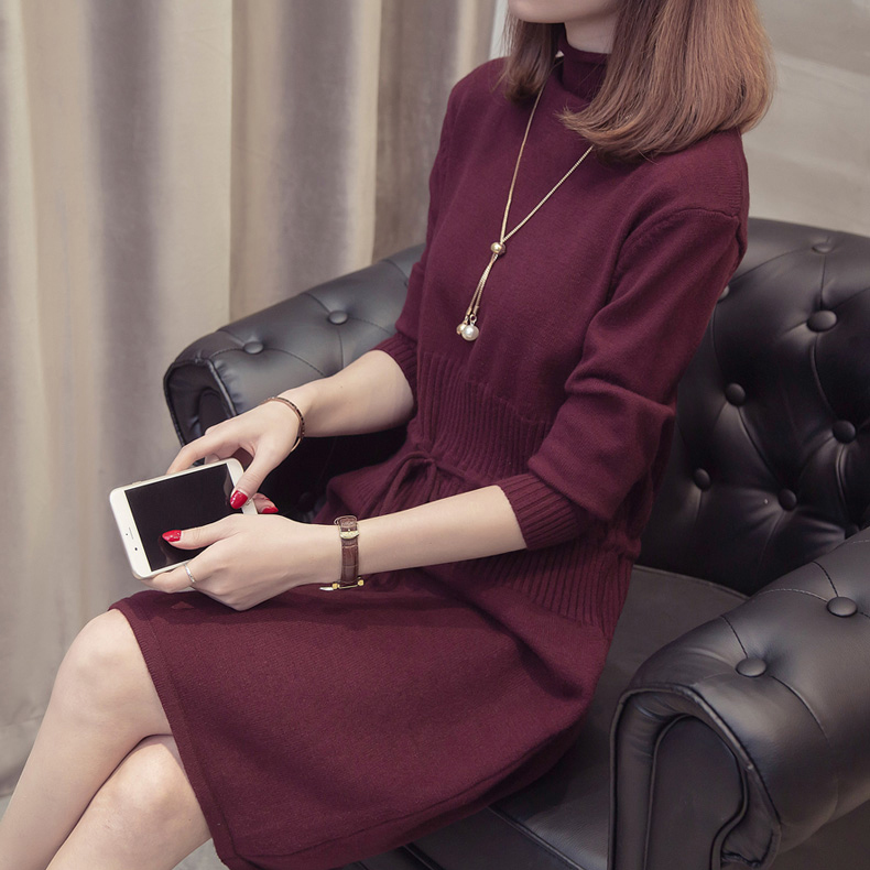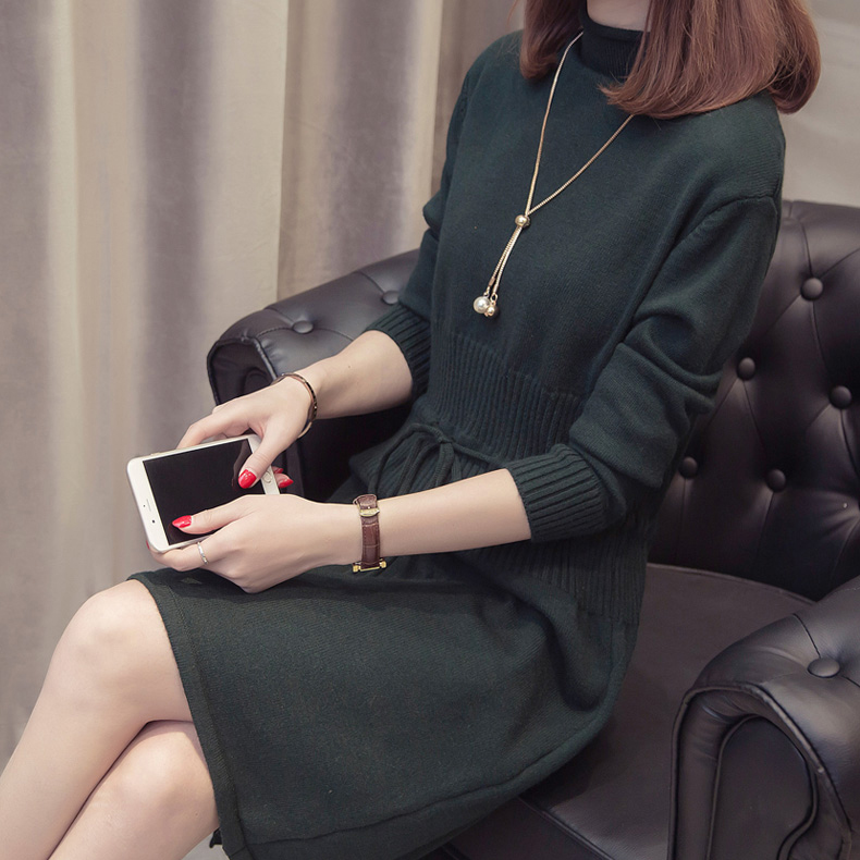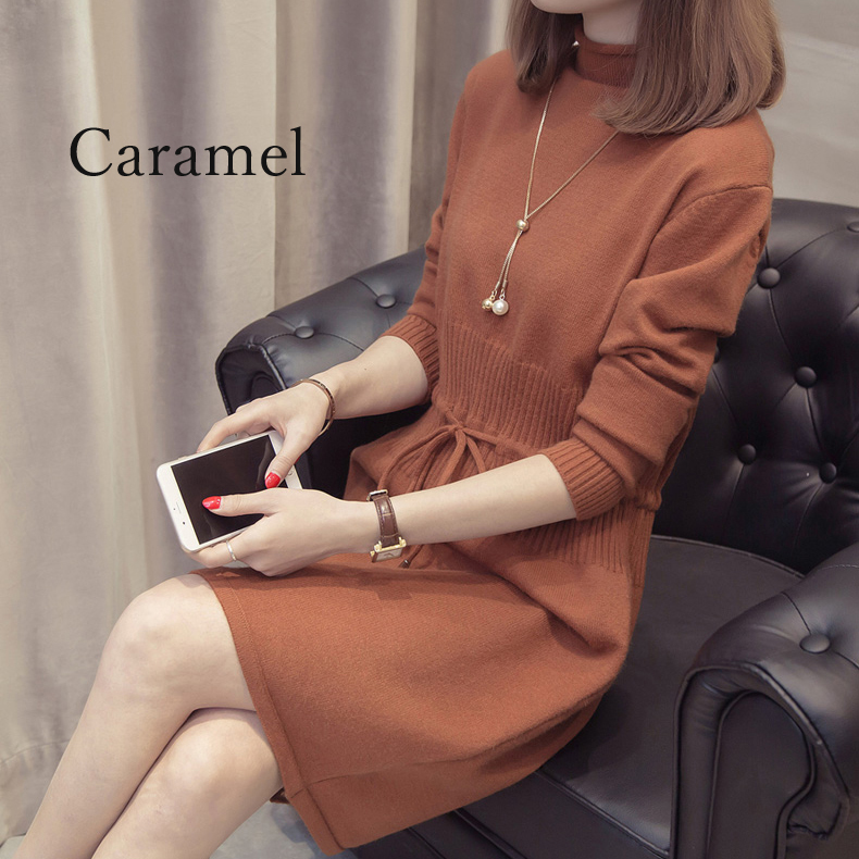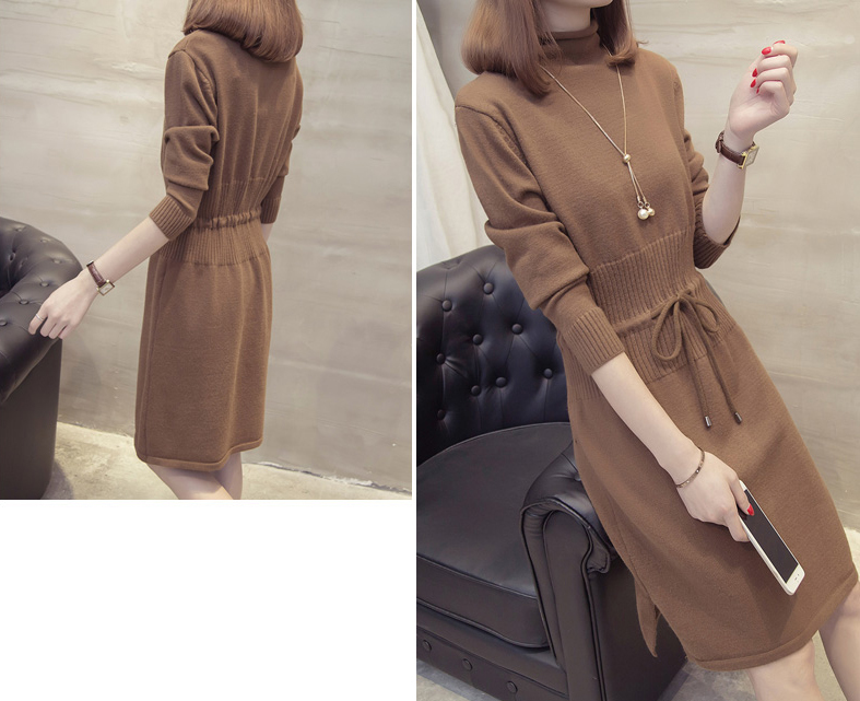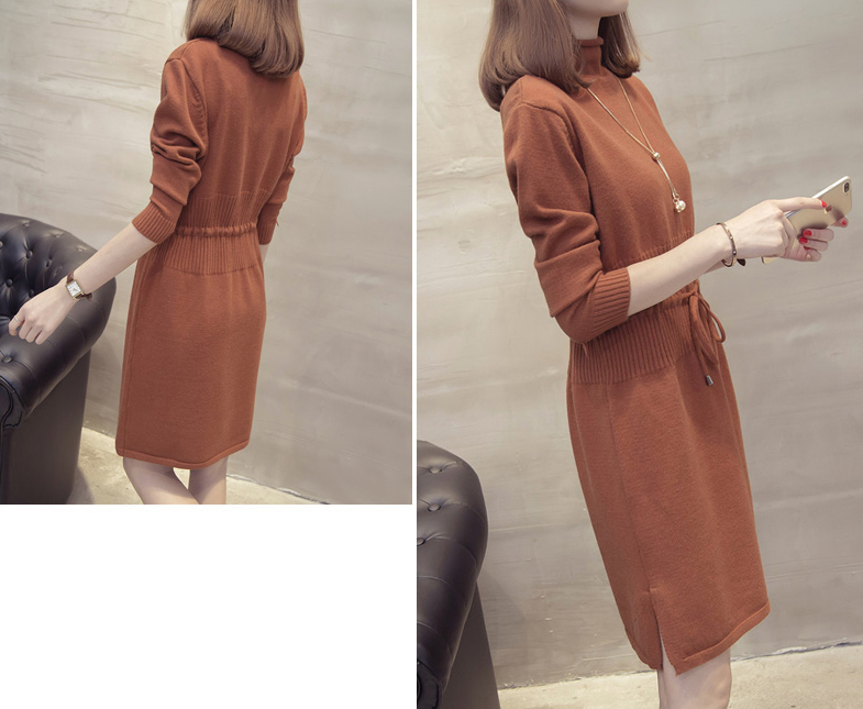 すっきり見えするIラインのニットワンピース。
