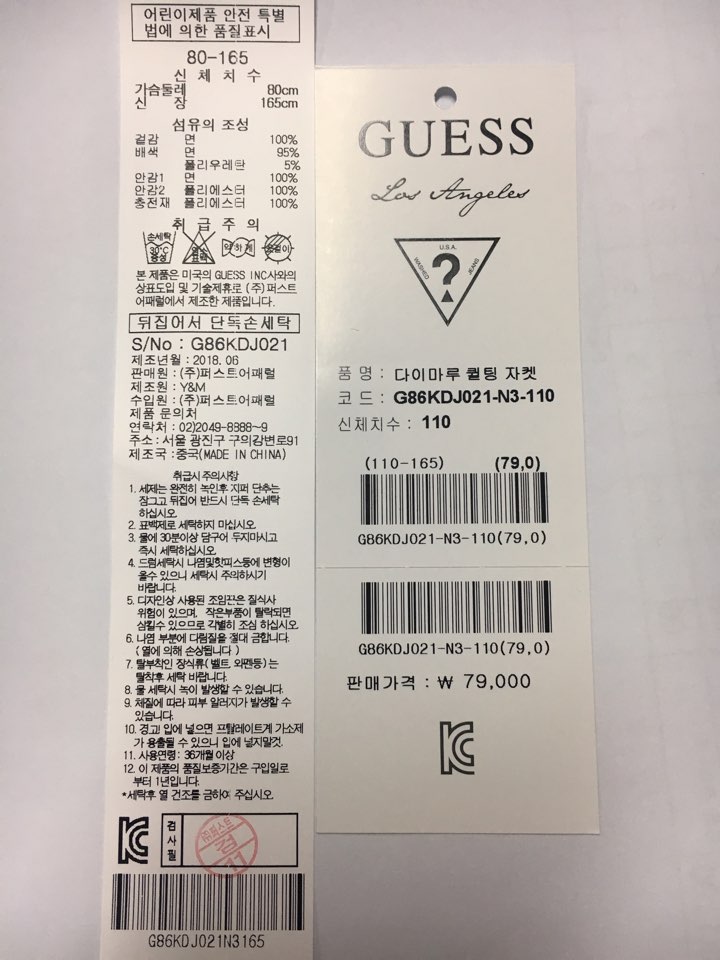 제조자 : 퍼스트어패럴