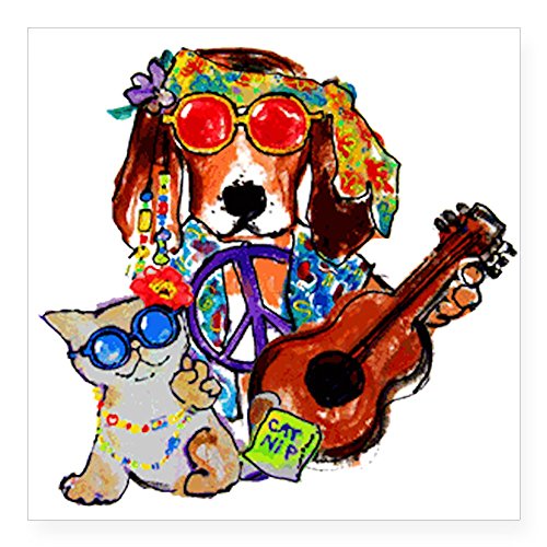 -. Binding : Kitchen -. Brand : CafePress -. Color : white -. Feature : Our stickers are P.R.Inted on 4mil vinyl using water- and UV-resistant inks-- meaning no fading in the sun or bleeding in the rain. / P.R.Inted on durable 4mil vinyl / Measures 3" x 3" / Unique Funny Design Sticker -. Label : CafePress -. Manufacturer : CafePress -. MPN : 782906437 -. PartNumber : 782906437 -. ProductGroup : Home -. ProductTypeName : HOME -. Publisher : CafePress -. Size : 3x3 -. Studio : CafePress -. Title : CafePress Square Sticker 3" x 3" - Cool Hippie Rockin Dog and Catnip Kitty Sticker