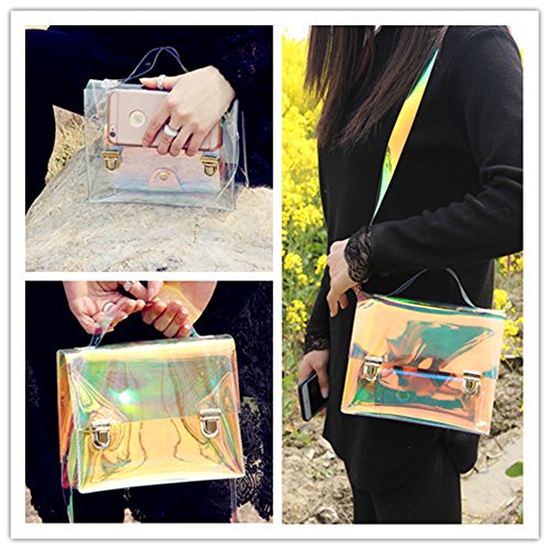 -. Brand : Yair Yangtz -. Department : womens -. Feature : Material: Iridescent PVC; / Product size: 22x 17 x 7 cm/ 8.6 x 6.7 x 2.8 inch; / Chain is about 115cm/45.27 inch, could not be adjusted; / Capacity: it fits phone with small card wallet and cosmetics; / Can be used as handbag, hand clutch purse, shoulder bag; -. ProductGroup : Shoes -. ProductTypeName : HANDBAG -. Title : Holographic Transparent Bag Retro Hologram Clear Bag Shoulder Crossbody Purse