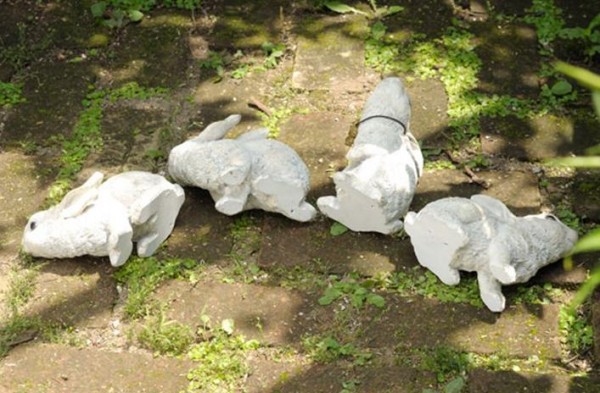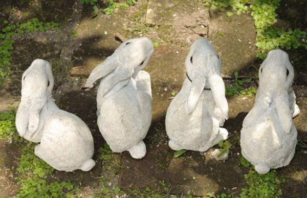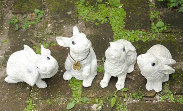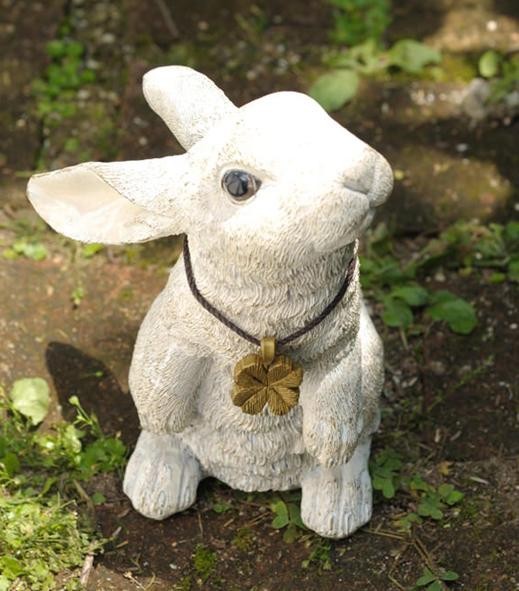 | 4匹で1セットになった、おてんばなウサギ達のオーナメント。植木鉢の横から顔を出したり、木陰でひと休みしたり。好奇心いっぱいのウサギ達が、お庭を楽しく彩ります♪アンティーク感が可愛いクローバーチャームがついています。 |
