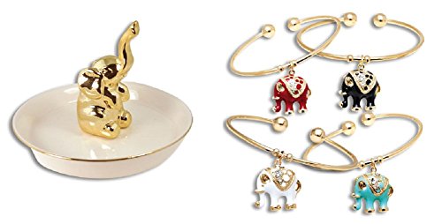 Elephant Ring Holder and 1 Elephant Charm Bangle Bracelet (Assorted Colors)