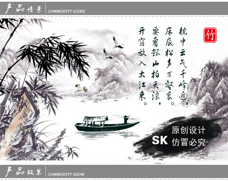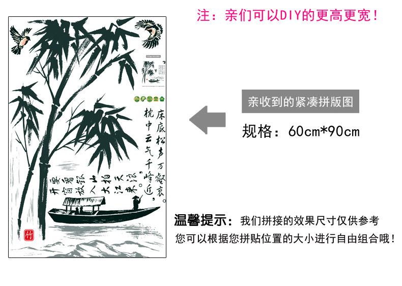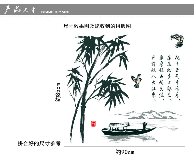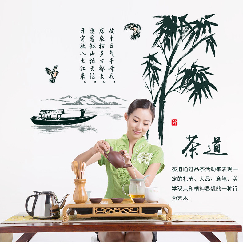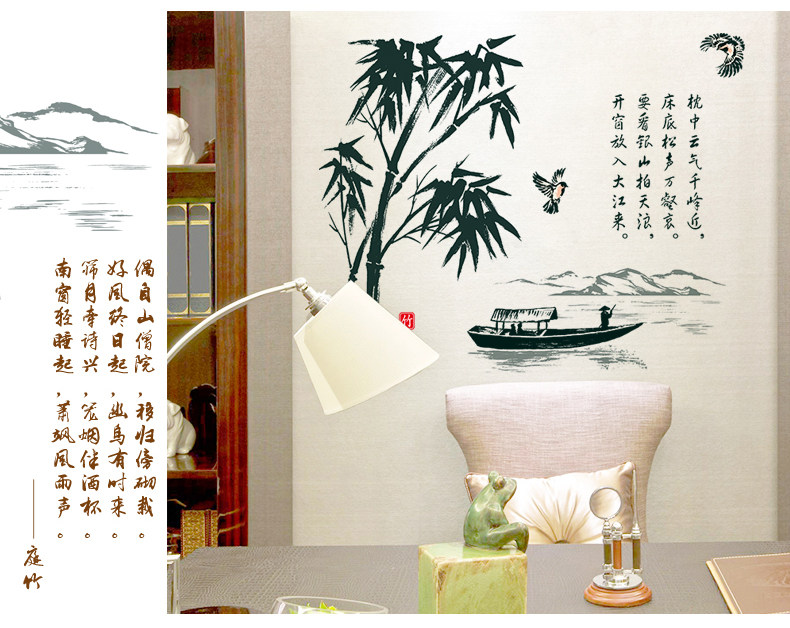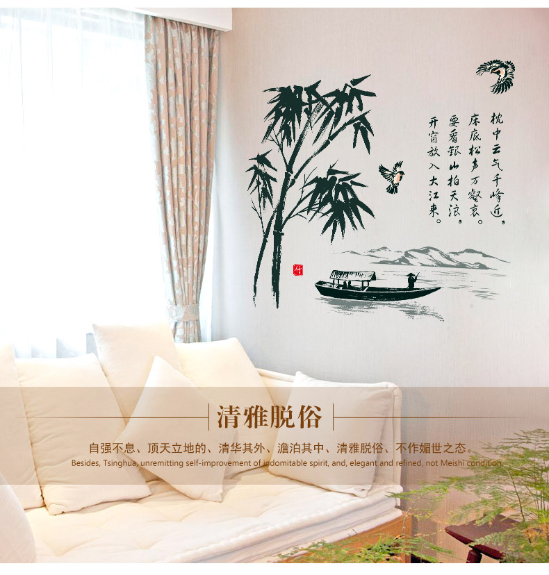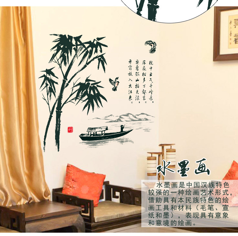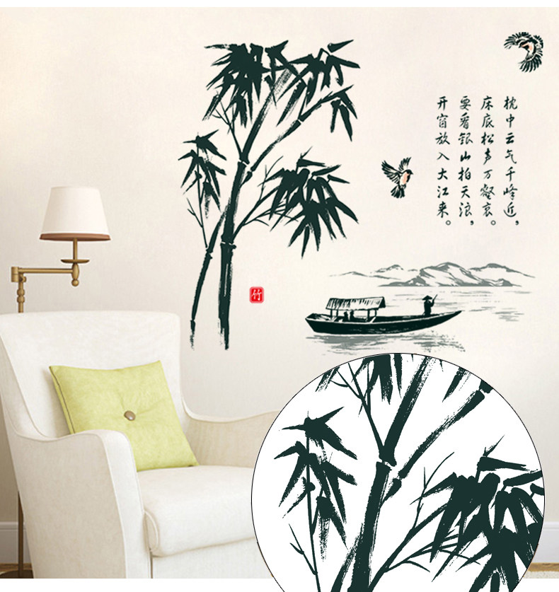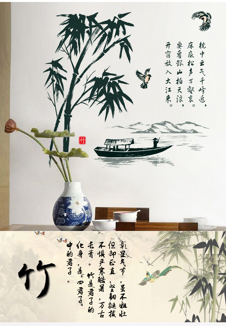 中国风水墨竹墙贴 典雅卧室客厅沙发电视背景贴纸环保可移除贴画