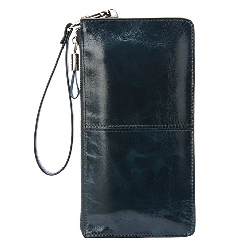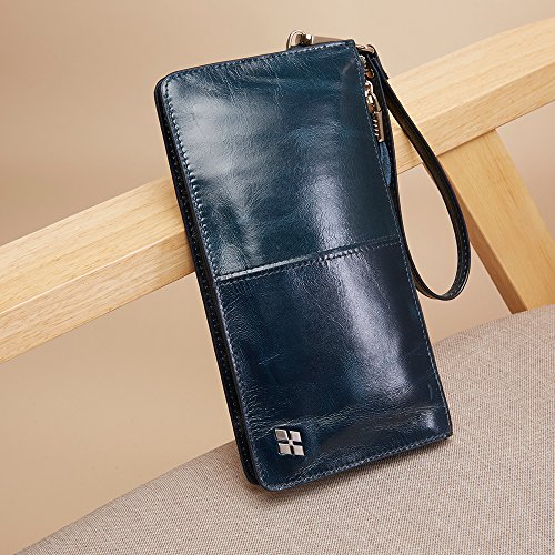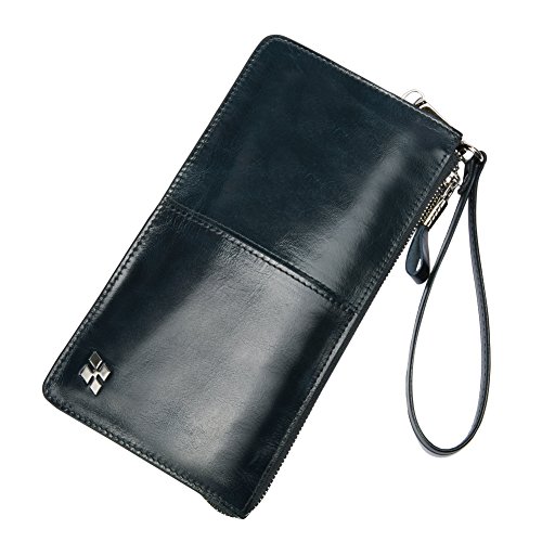 HAUTTON Men's Genuine Leather Wristlet Bifold Business Clutch Card Holder Purse Wallet Bag SZB41A (Green)
