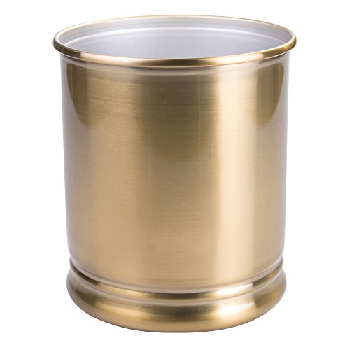 mDesign Round Metal Small Trash Can Wastebasket, Garbage Container Bin for Bathrooms, Powder Rooms, Kitchens, Home Offices - Durable Steel Construction with a Soft Brass Finish