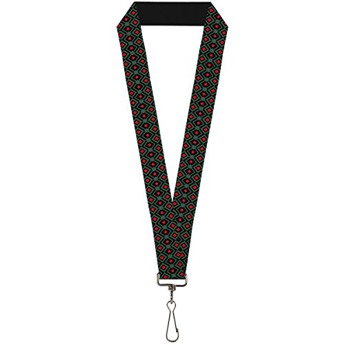 -. Binding : Apparel -. Brand : Buckle Down -. Department : unisex-adult -. Feature : This lanyard is made out of stretchy nylon, and has a stainless steel clip to easily detach your keys / Show off your favorite style / The lanyard is 1.0 inches wide, and a standard length -. Label : Buckle-Down -. Manufacturer : Buckle-Down -. PackageQuantity : 1 -. ProductGroup : Apparel -. ProductTypeName : ACCESSORY -. Publisher : Buckle-Down -. Studio : Buckle-Down -. Title : Buckle-Down Lanyard - 1.0" - Geometric3 Black/forest Green/red Accessory