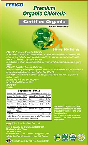 -. Title : Febico Pure Organic Chlorella Tablets, Rich Ingredients, Protein, Vitamin, Vegan, Best Green Superfood, high-quality, non-gmo, detox, USDA, Naturland and Halal Certified, 250grams for 83days.