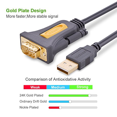 UGREEN USB 2.0 to RS232 DB9 Serial Cable Male A Converter Adapter with PL2303 Chipset for Windows 10, 8.1, 8, 7, Vista, XP, 2000, Linux and Mac OS X 10.6 and Above (3ft)