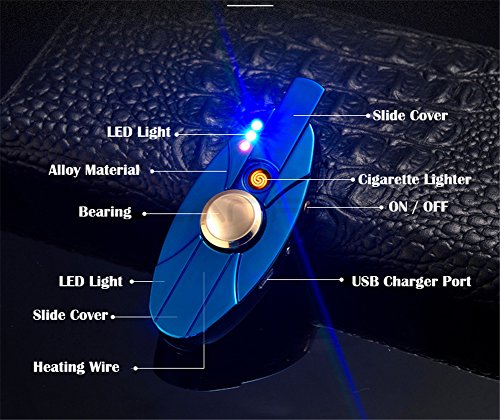 NO MORE BUTANE REFILLS, yes!! No more hassles in refilling your lighters. This Lighter is rechargeable!! Using the included mini-USB charging cable, you can charge this lighter anywhere. vSafe to use, since this lighter does not product any actual flames, so it is fire safe, and the electro-plasma arc stops once the ignition button is released. Also, there is a built-in safety feature on this lighter that, the lighter will not discharge a electro-plasma arc as long as the lid is closed, even if the button is accidentally pushed WARNING Use away from face, body, clothing, metallic and flammable clothing. DO NOT puncture or use near open electric arc flame. DO NOT expose to temperatures above 50° C (122° F) DO NOT place in sunlight for long periods of time. DO NOT keep flame lit for more then 5 seconds at a time. Keep Away from water, stop use when wet. Lighter are NOT toys- keep away from children. Use only in well ventilated area. Ensure the electric arc flame is extinguished after use. Package Include : 1 * Electronic Lighter 1 * USB Cable 1 * Premium Box 1 * User Manual 0