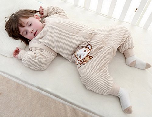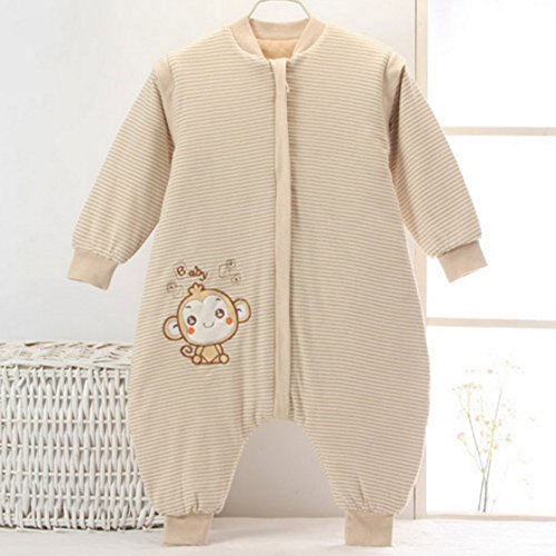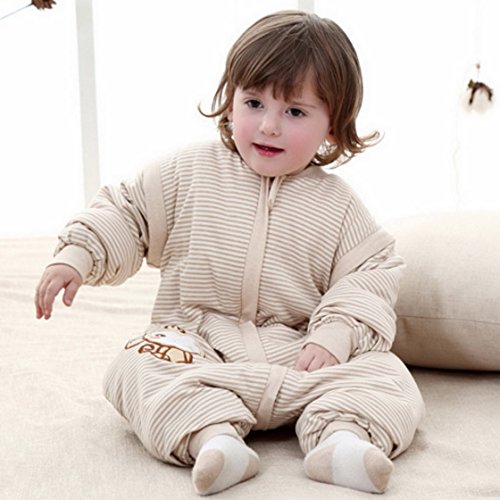 Feature : Over 95% Cotton. / Breathable, Lightweight, Warm, Antibacterial, Soft. / Zipper closure design helps to easy pee or poo; Don't need to take off the sleepwear, so baby stays warm all night. / Special design: Windproof sleeves; Cloth covers the zipper at neckline; Overlock cotton band at collar for protecting baby's neck; Cloth for separating zipper from baby's skin. / Size M fit for 6-12 months babies;Size L fit for 1-2 years old babies;Size XL fits for 2-4 years old kids.
