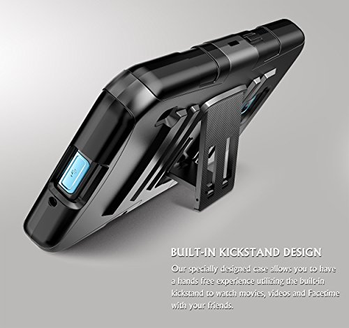 Form-fitting case designed to perfectly fit your device. Built-in Kickstand for the convenience of watching video and chatting. A locking swivel belt clip.