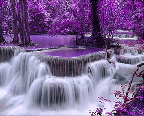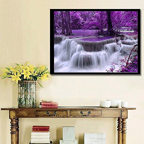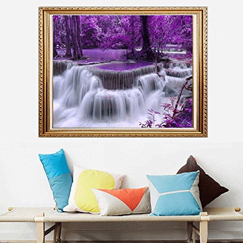 DIY 5D Diamond Painting by Number Kits, painting Cross Stitch Full Drill Crystal Rhinestone Embroidery Pictures Arts Craft for Home Wall Decor Gift Waterfall and Purple woods