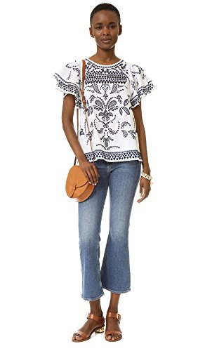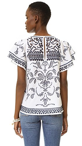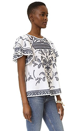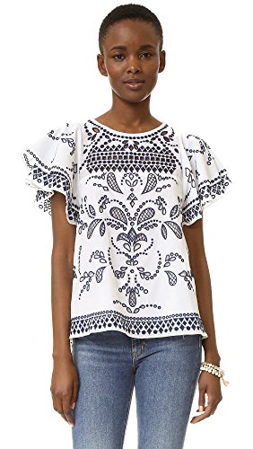Ruffle sleeved blouse with embroidery detailing. 100 percent cotton.