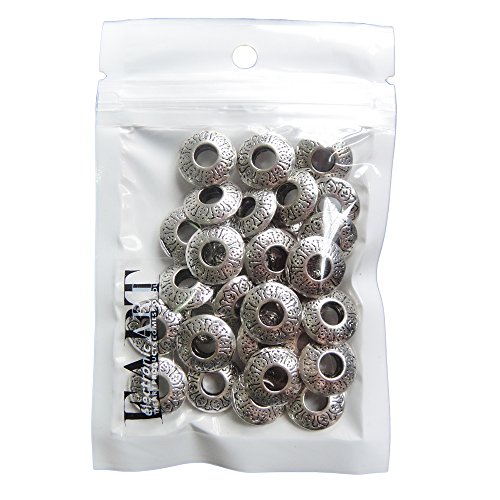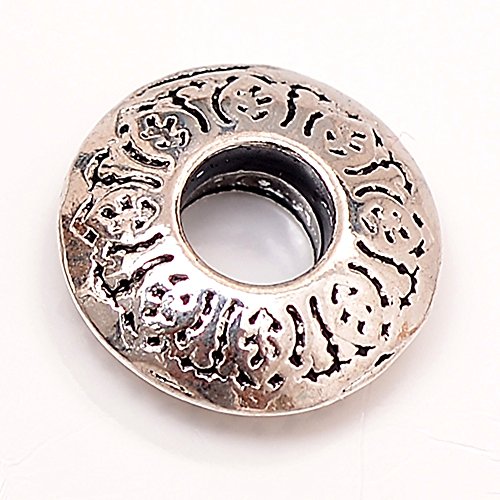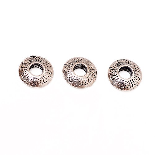 RUBYCA 50pcs Tibetan Silver Tone Spacer Beads Fit European Charms Bracelet Flat Ring