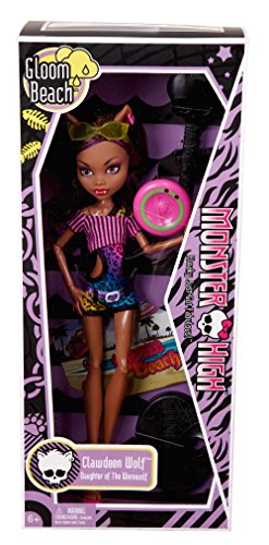 -. Feature : Get ready for ghoulish fun at Gloom Beach / Even monsters love to play in the sun and go to the beach / Clawdeen Wolf is the daughter of the Werewolf / Doll is fully articulated so they can be posed in many different ways / Includes doll, beach outfit, sunglasses, cover up, brush, and one beach-related accessory