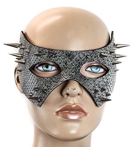 -. Brand : Cybergoth -. Color : Silver -. Department : womens -. Feature : Made of high quality eco-friendly poly-resin material / Measures approximately 8" x 4"W / Worn with ribbons attached to both sides of the mask / One size fits most -. PackageQuantity : 1 -. ProductGroup : Apparel -. ProductTypeName : ADULT_COSTUME -. Size : One Size -. Title : Snake Steampunk Masquerade Cyber Goth Cosplay Mask with Spikes -. UPC : 737123707164