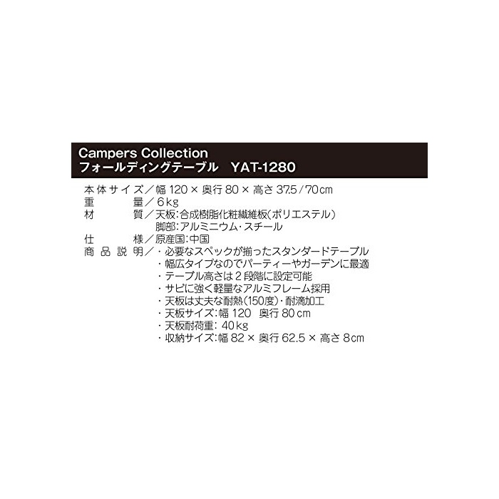 원본상품명: キャンパ?ズコレクション フォ?ルディングテ?ブル(幅120?行80) YAT-1280