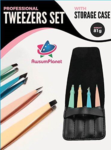4 Piece Premium Stainless Steel Tweezer Set - Travel Case - AwsumPlanet