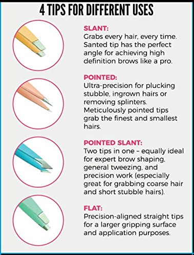 POINTED SLANT: Two tips in one – equally ideal for expert brow shaping, general tweezing, and precision work (especially great for grabbing coarse hair and short stubble hairs).