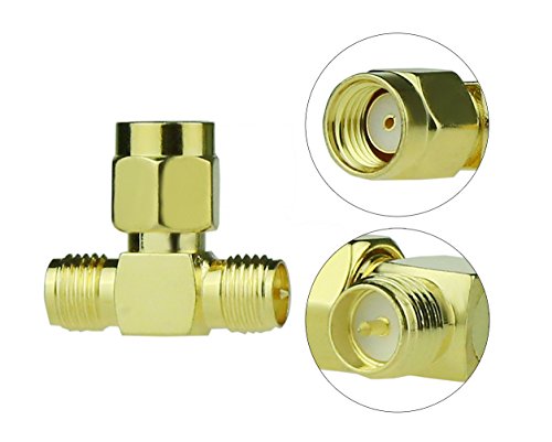 -. Feature : 1.T-shaped Adapter RP-SMA male ( hole in center, thread inside) to RP- SMA Female ( pin in center, thread outside) RF Coaxial Connector Adapter / 2.Impedance :50 ohm / 3.Material: Gold plated Brass;gold tone adapter with great electrical conductivity and superior performance / 4.Commercial Grade Connector / 5.Package Content : 2 x RP-SMA male to RP-SMA Female Adapters