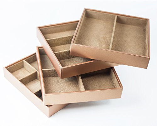 HUJI Stackable Jewelry Trays Organizer Storage Rings Earrings Bracelets Watches Necklaces (1, Camel Brown Stack-able Trays)