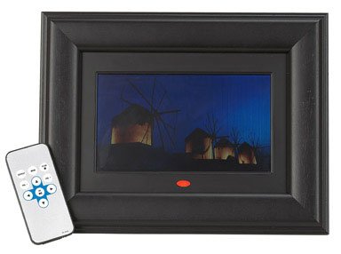 -. Feature : 7" wood frame / Remote control / Clock/calendar / 16MB memory built in / USB input