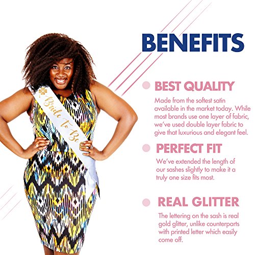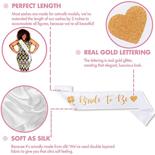 - PERFECT LENGTH - We’ve tested the length of our satin sash on over 100 brides to be and eventually came up with the perfect length that fits most future mrs. The ends of the sash are stitched together so you don’t have to fiddle around with safety pins.