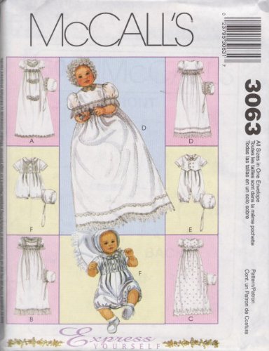 -. Title : McCall's 3063 Sewing Pattern Infants Christening Gown Rompers Bonnets Newborn - Large