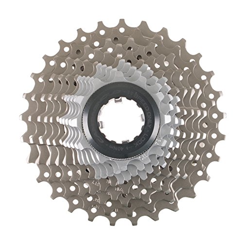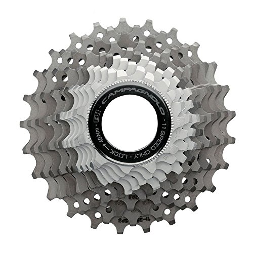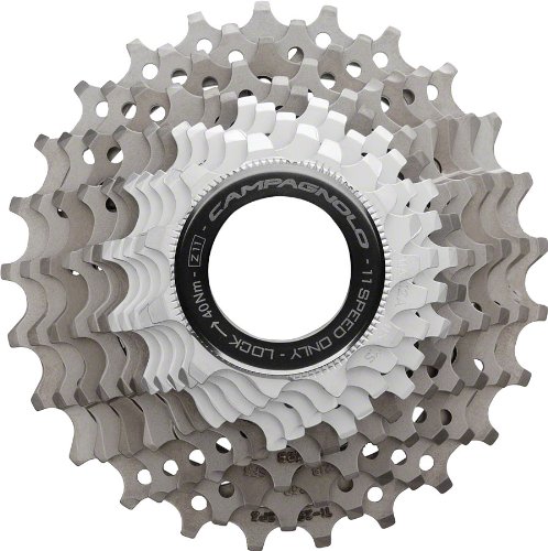 Studio : JB Importers, Inc. Publisher : JB Importers, Inc. Binding : Sports Product Description Campagnolo's Super Record 11 Cassette boils down to buttery-smooth and hyper-responsive shifting. Campy's top-tier groupset features Ultra Shift technology, meaning each and every tooth of the Super Record 11 cassette is shaped to perform a specific function. Whether the chain is being lifted or lowered, Ultra Shift relieves pressure on the chain, the rear derailleur, and the cassette itself. This results in unbelievably quick and quiet shifting that you can rely on. The Super Record 11 Cassette is built with both titanium and steel, providing the perfect combination of lightness and durability. The six largest cogs are made out of titanium, lightening the cassette considerably. Because the smallest cogs see more use and thus wear faster, Campagnolo built these with a sturdy nickel/chrome-coated steel. In addition to shaving weight with the 6 Ti cogs, the Super Record 11 cassette features a lightweight alloy lockring and a splined aluminum frame, which also increases the overall torsional stiffness. 0