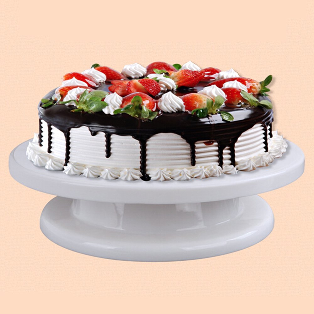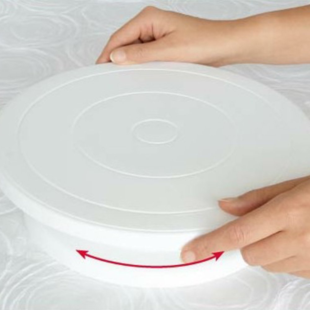The platform easily rotates in either direction for icing, border, combing, leveling.