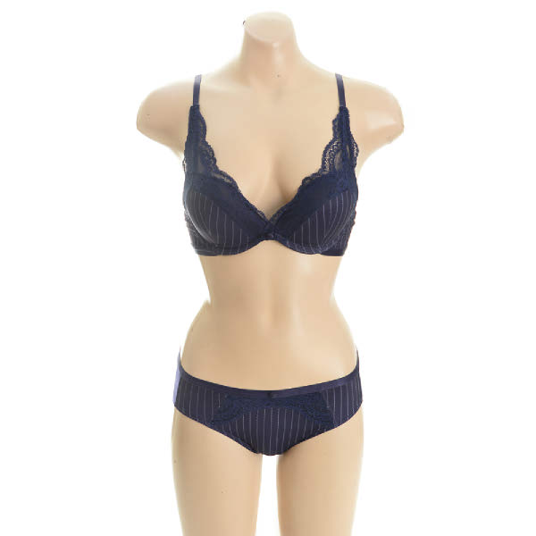 - NB컬러의 핀스트라이프 나염에 컵위로 올라오는 레이스가 포근하게 감싸주며, 시크한 감성연출.