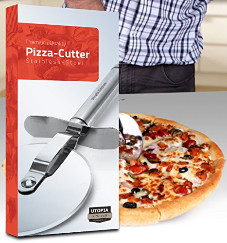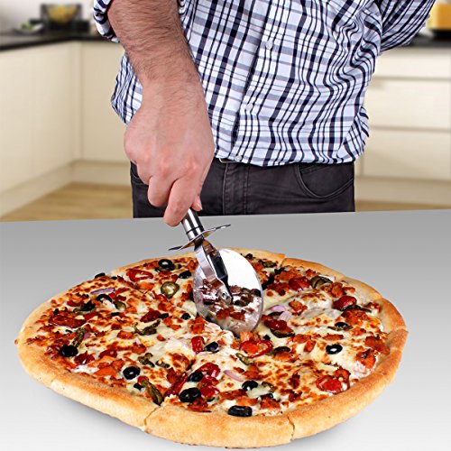Get the most value for your money with Top-Rated Professional Grade Kitchen Tools! Stainless Steel Pizza Cutter is perfect for slicing your favorite pizzas, flatbreads, and dough. Durable materials resist tarnish, rust, scratching, and residue while maintaining blade sharpness. Safety guard and easy grip contoured handle allow for safe, easy rolling. Dishwasher safe.