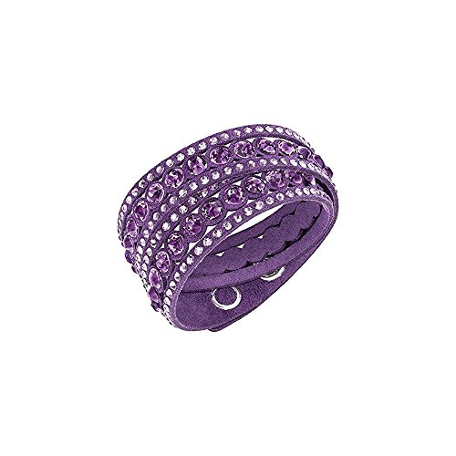 A swarovski wrap-around bracelet styled in purple Alcantara, set with purple-toned crystals around the exterior. The closure featured two clear crystal snap buttons you can set to adjust to a size that is most comfortable for you. Approximate length: 14 1/8".
