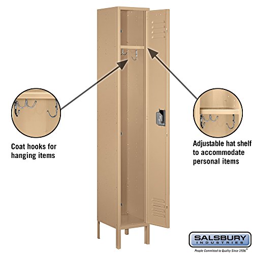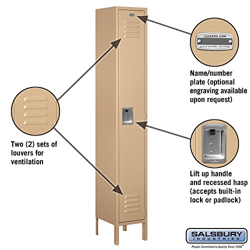 Salisbury 61000 Series Single Tier Standard Metal Lockers are ideal for colleges, high schools, locker rooms, employee changing rooms, government agencies, gyms and many other applications. Constructed of 16 gauge steel. Available as unassembled or assembled (additional charge for assembled). Feature a durable powder coated finish available in gray, tan or blue. Available in heights of 5 feet and 6 feet (add 6" for legs). 5 foot high lockers have a compartment size that is 12" wide, 60" high and 12", 15" or 18" deep. 6 foot high lockers have a compartment size that is 12" wide, 72" high and 12", 15" or 18" deep. Available as 1 wide or 3 wide units. Salisbury Industries is an ISO 9001: 2008 certified company and has excelled in the field of manufacturing since 1936.Feature