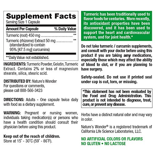 Product DescriptionNature's Wonder Turmeric 500mg. An ancient herb that supports heart and immune health.0