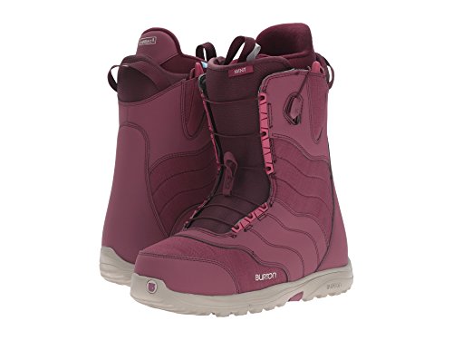 Studio : Burton Publisher : Burton Binding : Apparel Product Description You can't argue with the facts: more women choose the Burton Mint than any other snowboard boot. Whether riding a few times a week or a few times a year, a boot that keeps you warm and happy is essential. For this reason, we up the comfort with Sleeping Bag reflective foil to defy cold weather by capturing and radiating body heat back at you. Mainstays like Burton's exclusive Total Comfort give you a fit that feels perfectly broken in right out of the box. One of the softest, most forgiving women's boot Burton makes, the Mint's proven security is sure to keep you happy after hours of on-hill action. 0