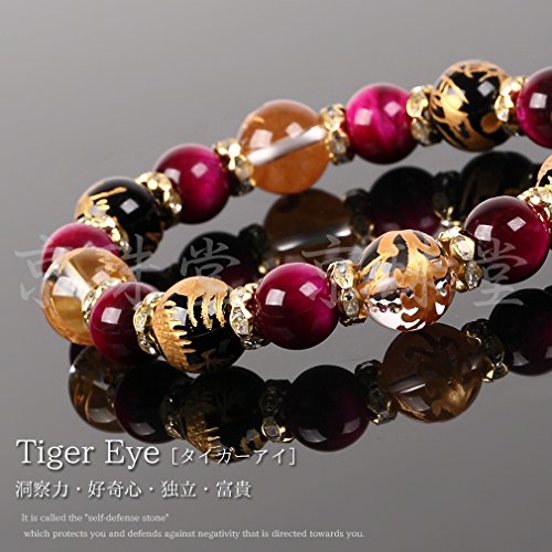 원본상품명: 【京珠堂】AAA 四神×皇帝龍オニキス×タイガ?アイ 12mm 天然石 ブレスレット(ピンク)