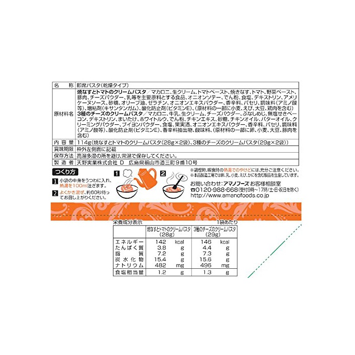 원본상품명: アマノフ?ズ 三ツ星キッチン クリ?ムパスタ 4食P(2種×2個)